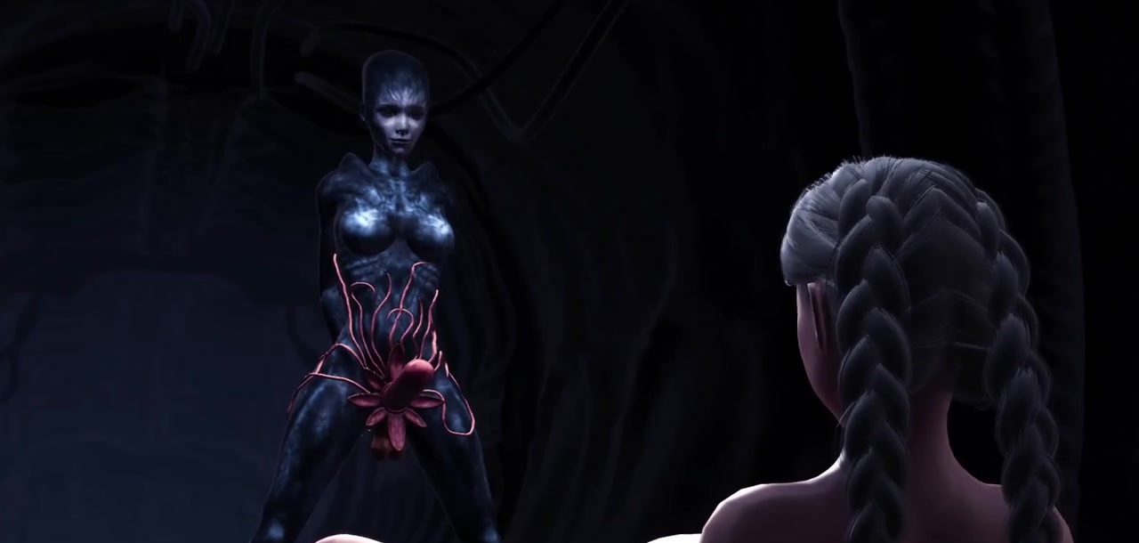 A sexy hottie gets fucked by a female alien in a cave on an exoplanet