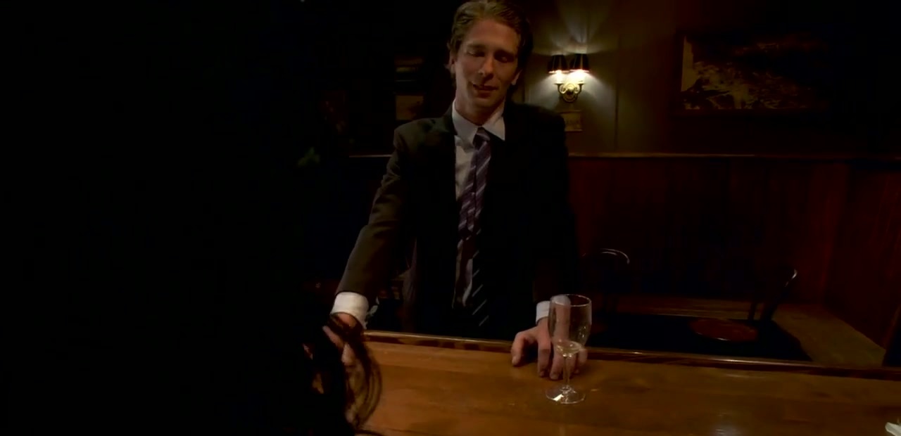 Big tits brunette shemale bartender TS Foxxy seduces business man Chris Archer in her bar and sucks his big cock then anal fucks him on the ground