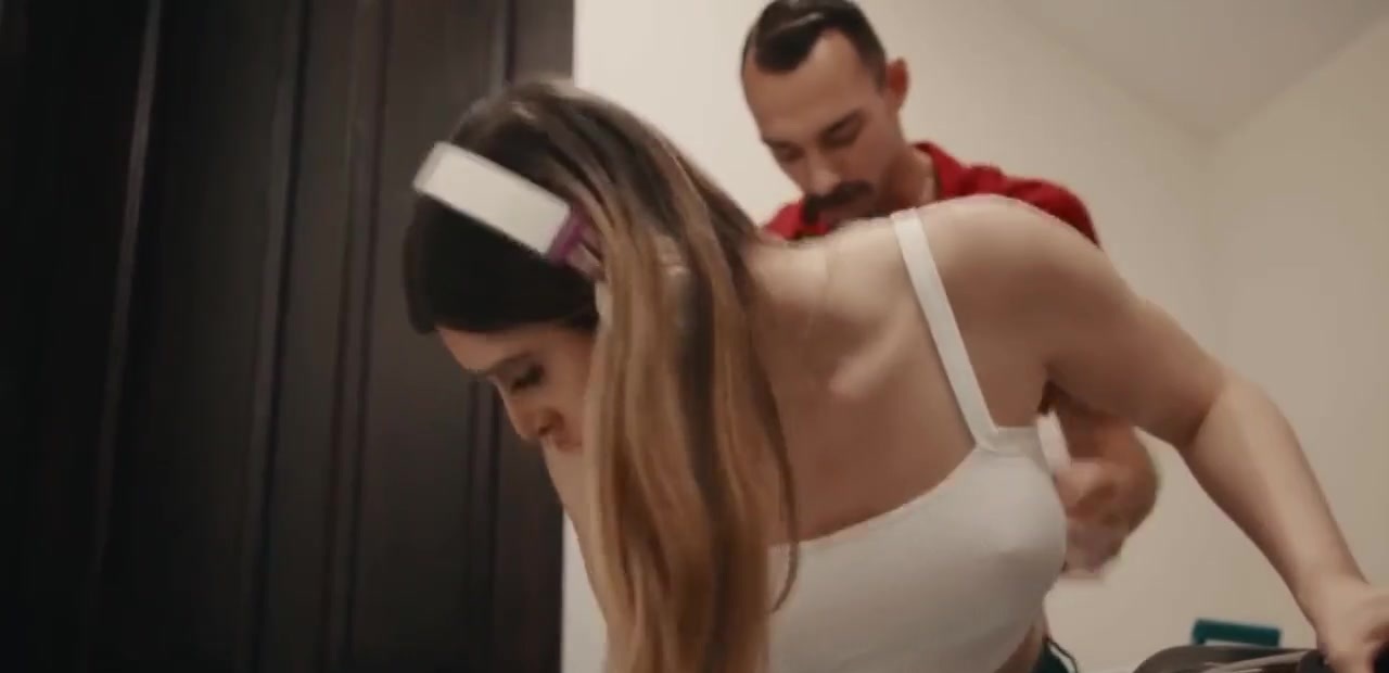 Curvy TS maid is in the laundry room washing clothes and her boss saw her.He pulls out his dick and he then bareback fucks his TS maid.After that,they move into the bathroom and he starts sucking her she dick and bareback fucks her ass.