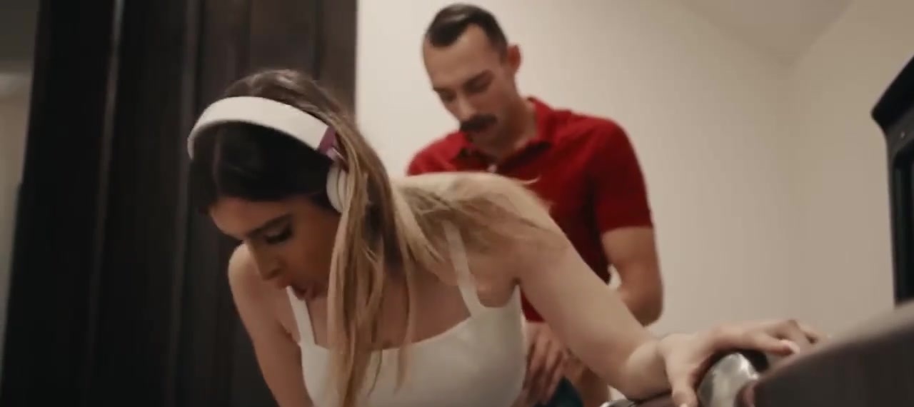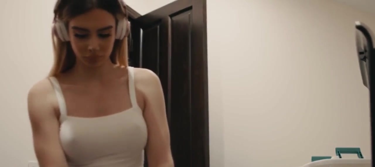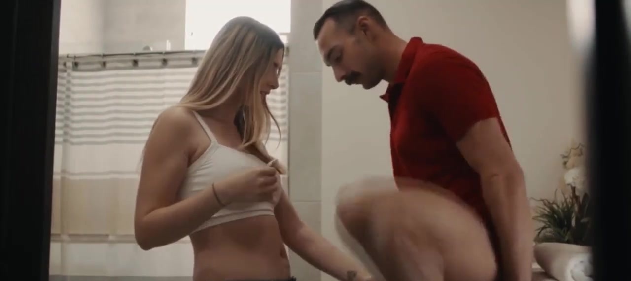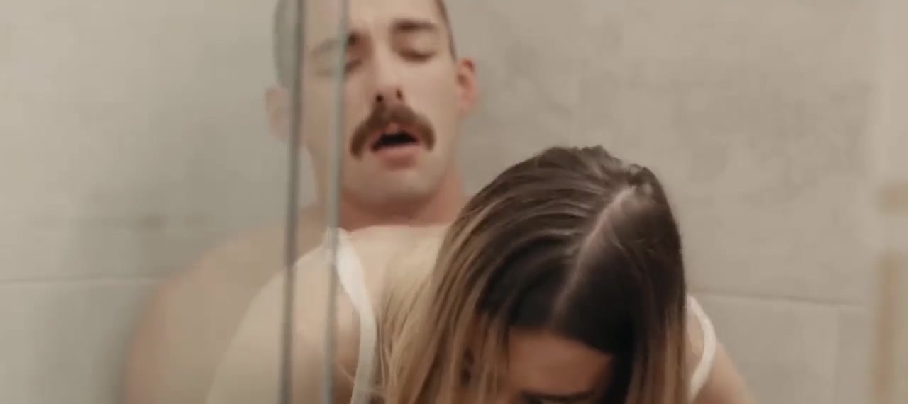 In the laundry room, busty blonde shemale Ivory Mayhem accidentally tore her pants while bending over thus Johnny B instantly anal barebacks her big ass doggystyle. In return, the big tits tbabe deepthroat blowjob his huge dick and rides it in the bathroom while masturbating.