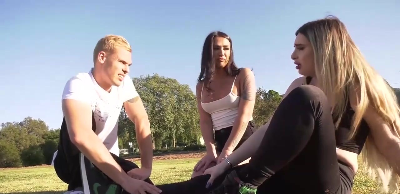Two beautiful transexuals Khloe Kay and Ivory Mayhem make out with hadnsome straight guy Tony Sting kissing while masturbating and deepthroat blowjob ones big cock. Soon, the other is sucking while bareback anal asshole in threesome until reaching orgasm.