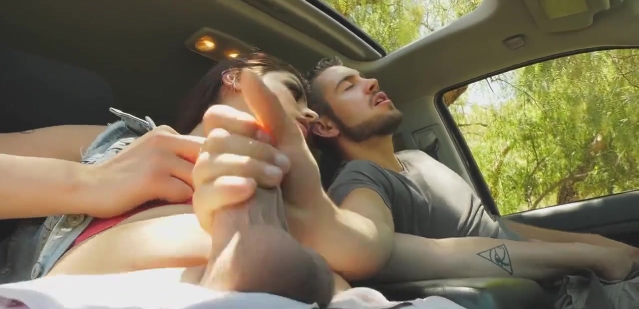 Trans hitchhiker Crystal M is picked up by a guy and parks in a secluded area.He pulls out his big cock and the small tits tgirl pulls out her small tranny cock and jerks off.The redhead shemale deepthroats his dick and the ts gets barebacked outdoor