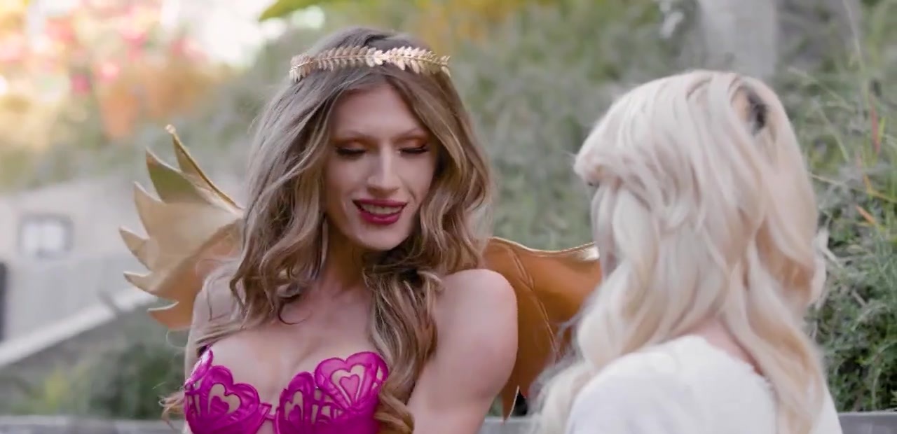 Trans cupid Jade Venus helps lesbian couple make up and kiss.The ts and the babe suck the curvy milf big tits and she deepthroats her big tranny cock.The shemale licks the redhead hairy pussy and the busty tgirl fucks the blonde shaved pussy in 3some