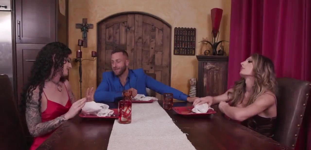 Big tits trans Jade Venus kisses a tattooed girl as her bf watches.He joins in 3some and deepthroat facefucks her.The couple give the blonde tgirl a double bj and he sucks her big tranny cock.Then the ts anal fucks the small tits babe as shes DPed