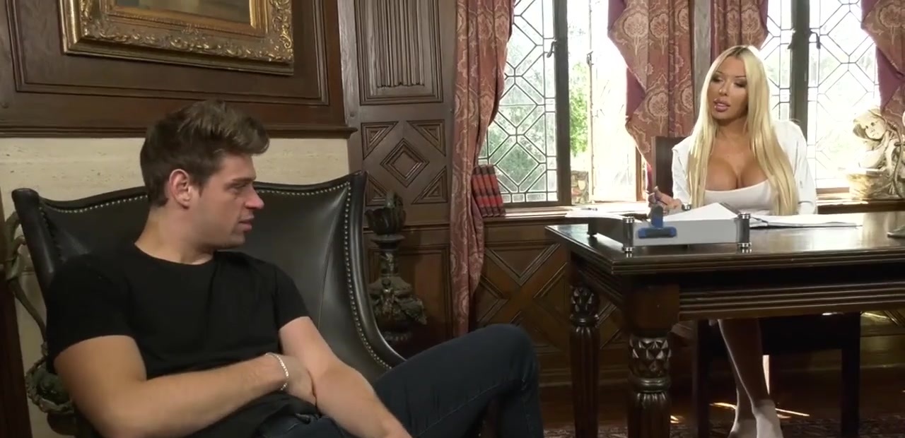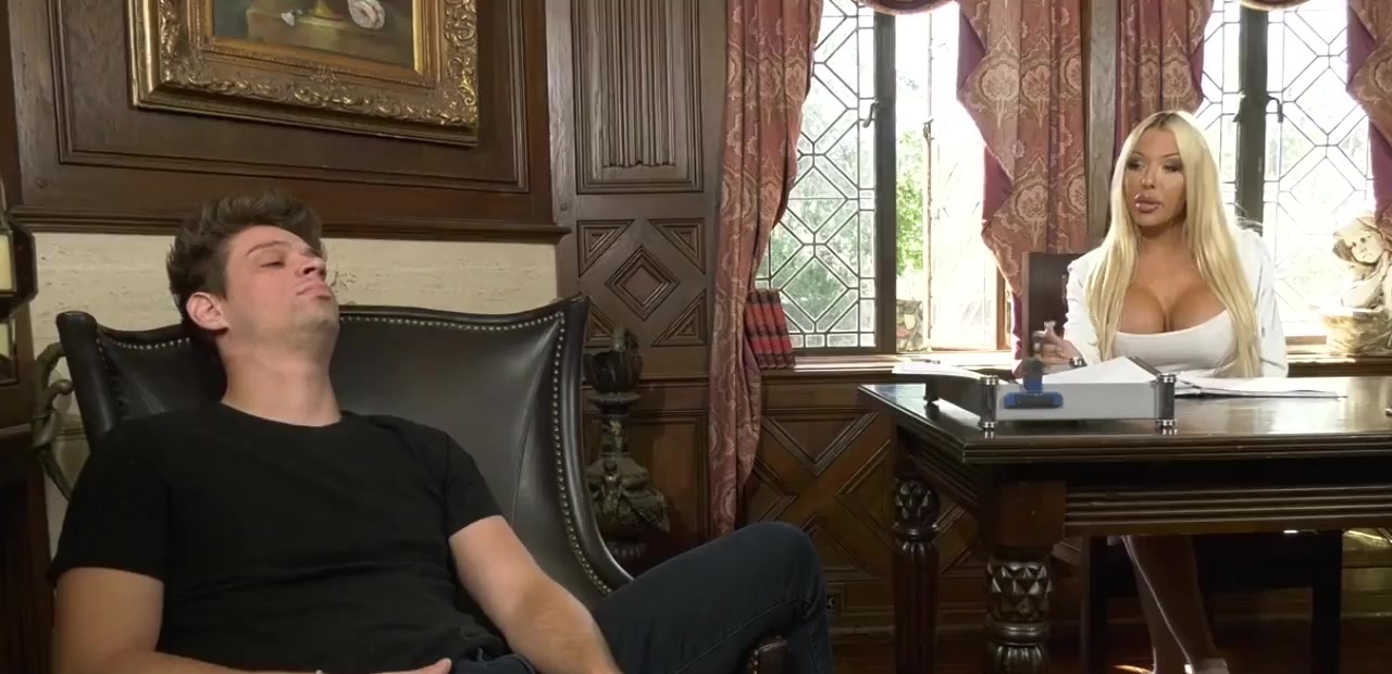 Patient Michael DelRay rimming and sucking big cock to big tits blonde shemale therapist Brittney Kade then shoves big cock up her ass on wooden desk in her office
