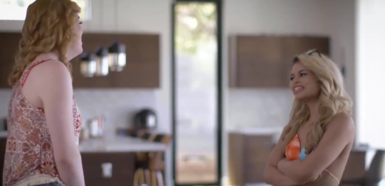 Latina blonde transsexual Destiny Cruz makes out with her beautiful female friend Erica Cherry kisisng while caressing big tits. They take turn oral sex deepthroat blowjob and pussy licking before the tbabe fucks her eager pussy with her big tranny cock.