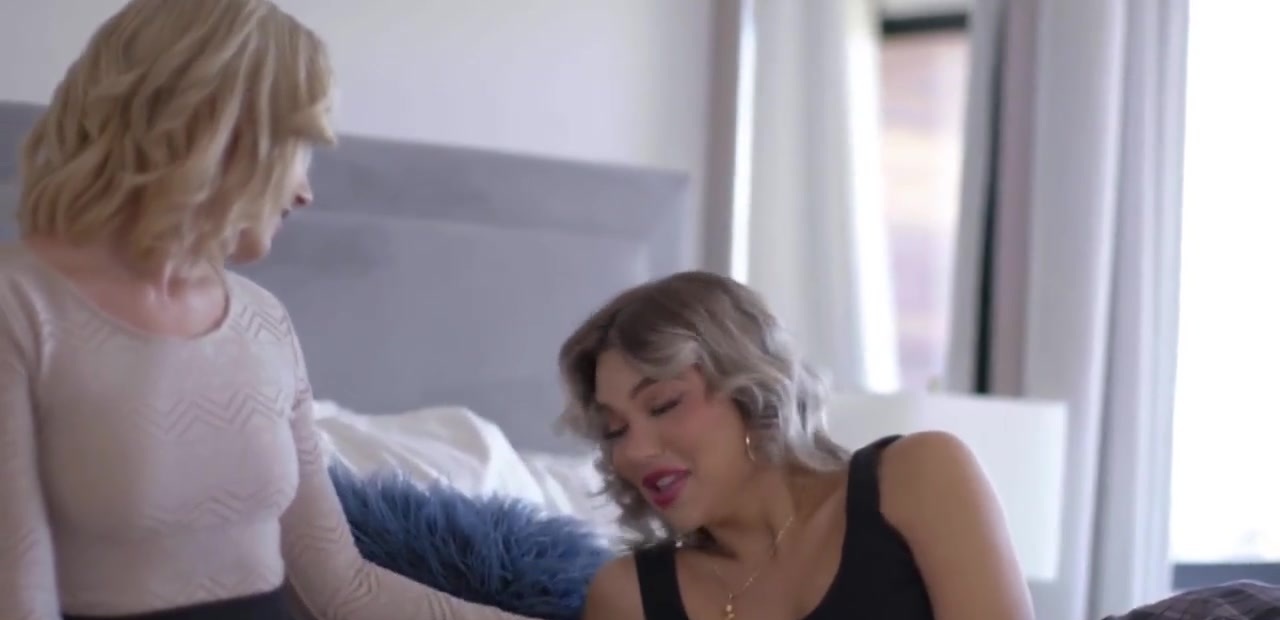 Rich Tbabe shows her new mansion to her bestfriend.After that,they get horny and start kissing each other on the bed.Next is,she licks the pussy of her bestfriend first and in return,her bestfriend throat her hard shecock and rides it.
