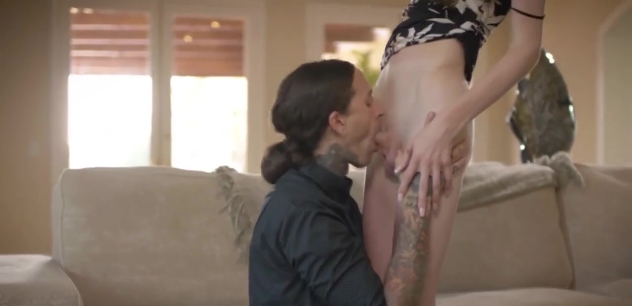 Tall shemale and her friend full of tattoos are on the couch kissing each other passionately.After that,she throats his hard big cock and in return,the guy licks her ass first to makes it wet.Next is,she lets him bareback fuck her ass so hard.