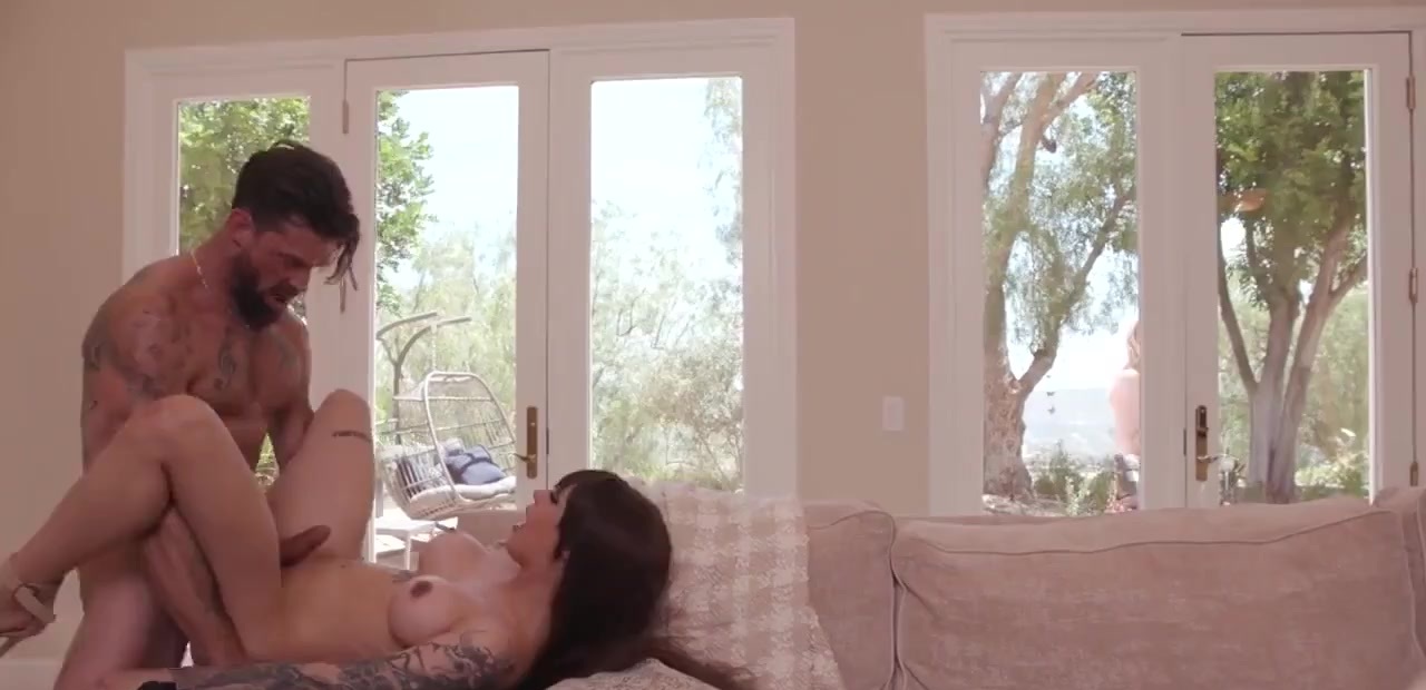 Blonde babe catches husband fucking big tits latina tgirl Eva Maxim and they have a 3some.She gives them a blowjob and then sucks the tattooed shemales big cock as shes fucked.Then the busty brunette tranny gets barebacked as the ts bangs the girl