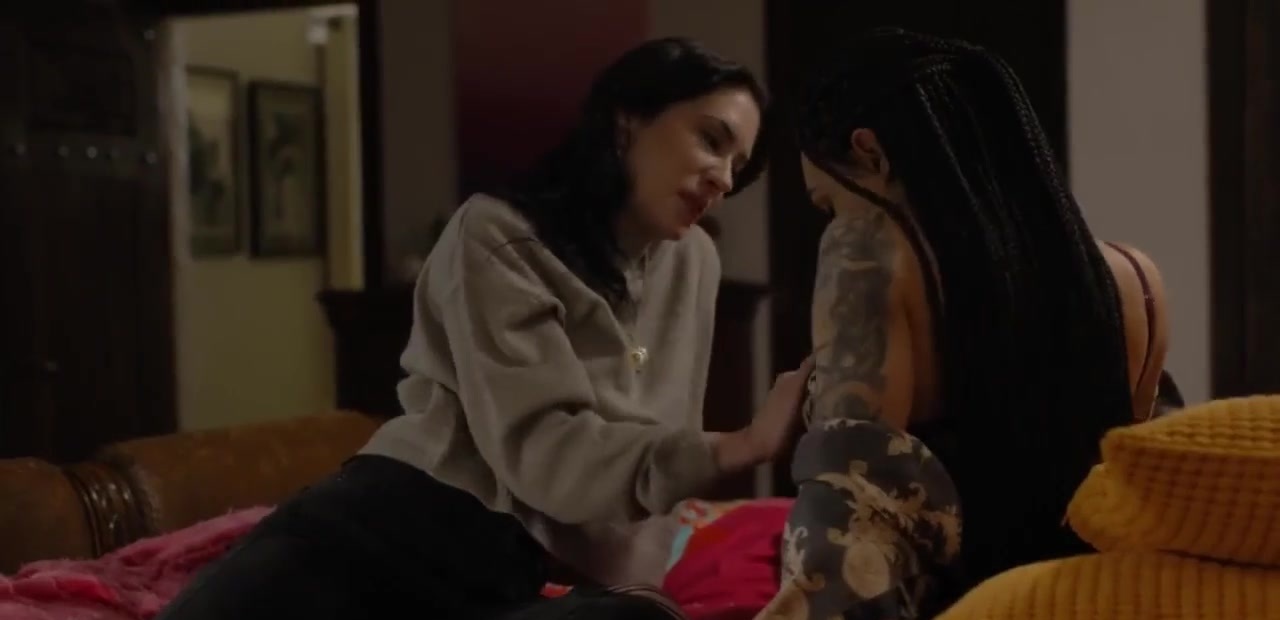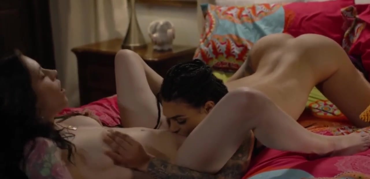 Pale skin babe goes to the room of her shemale stepsister and then they start kissing each other passionately.After that,she throats her hard shecock and in return,she gets her pussy licked and fucked by TS stepsister.