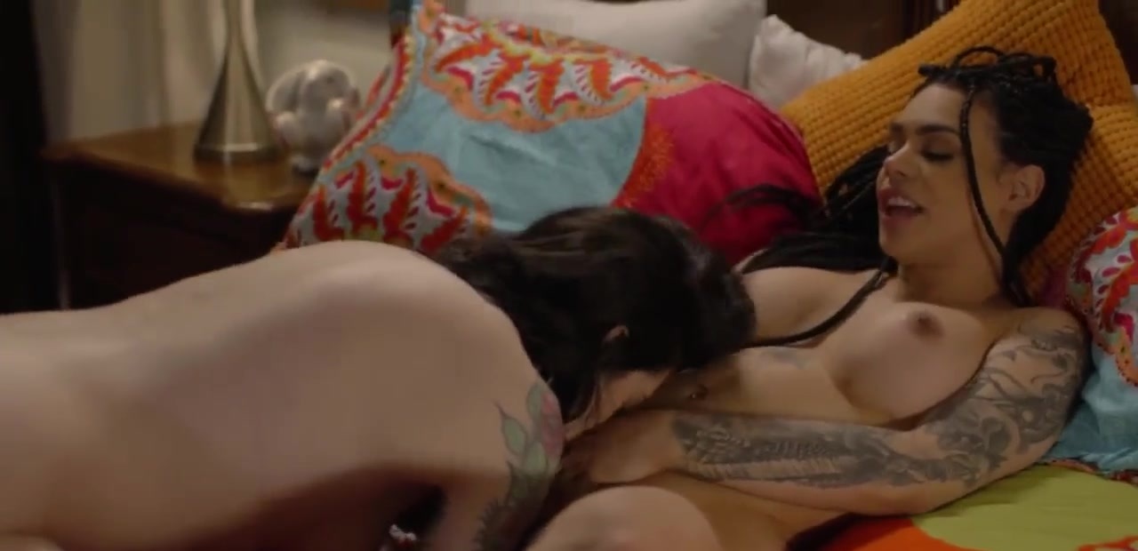 Super while skin babe goes to the room of her shemale stepsister and then they start kissing each other passionately.After that,she throats her hard shecock and in return,she gets her pussy licked and fucked by TS stepsister.