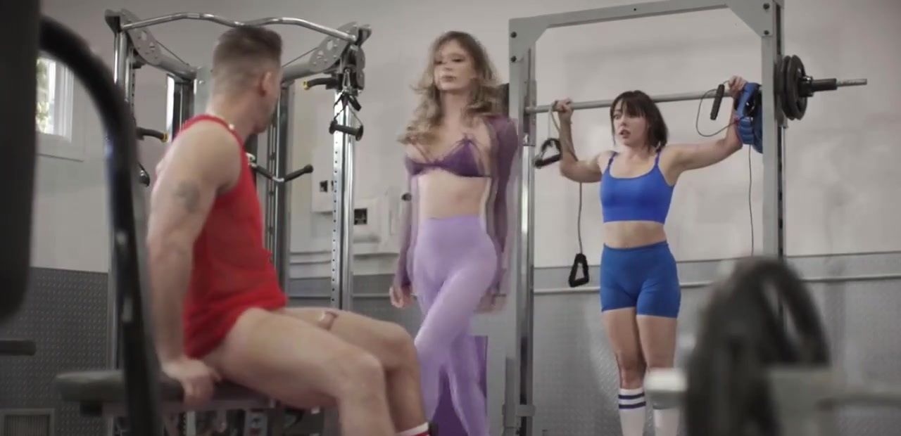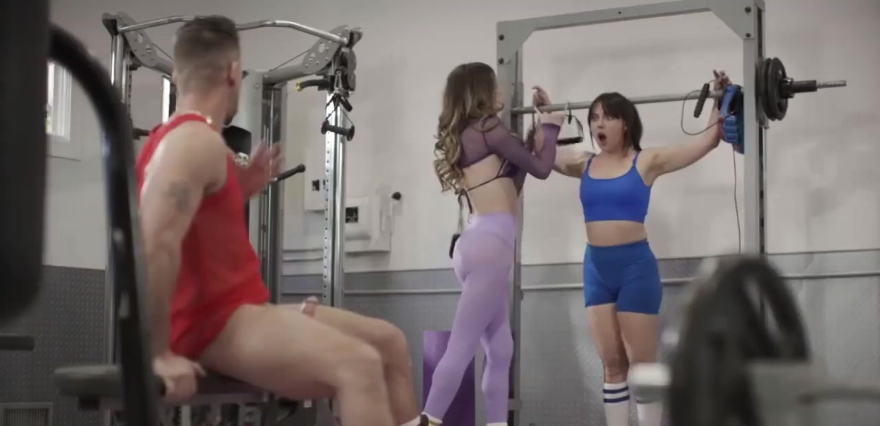 TS Jade Venus lets bff watch while riding gym instructors cock
