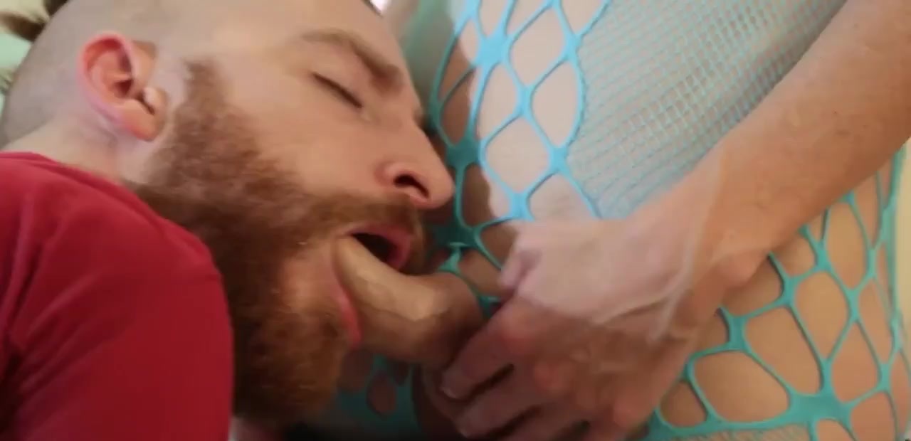 Blonde tgirl Mandy Mitchell catches a plumber spying on her and dominates him.The small tits trans pulls out her small cock and deepthroat facefucks him.The guy asslicks the ts and the tranny anal fucks him.The shemale jerks off as he licks her foot