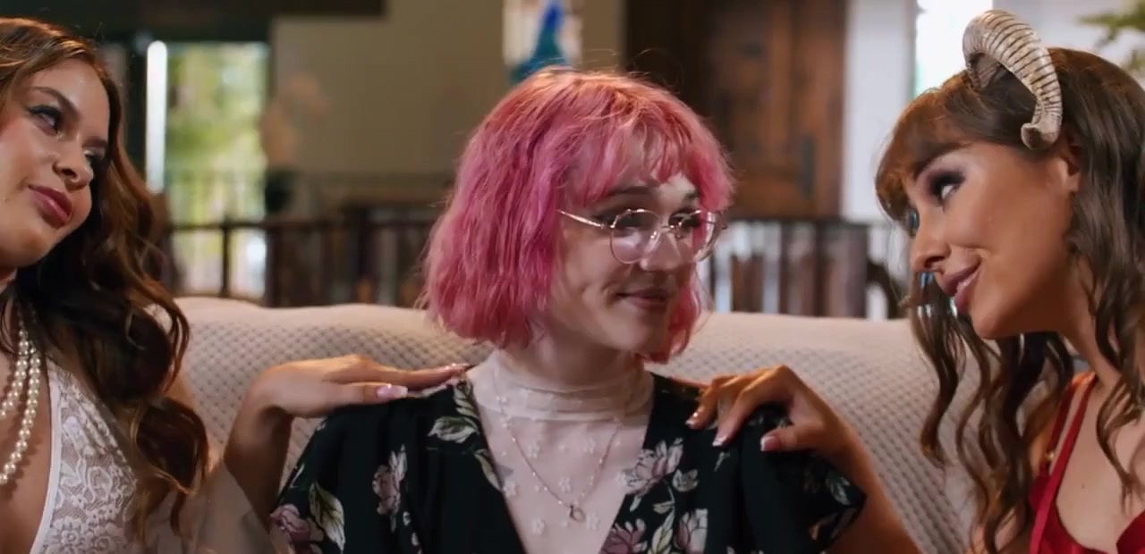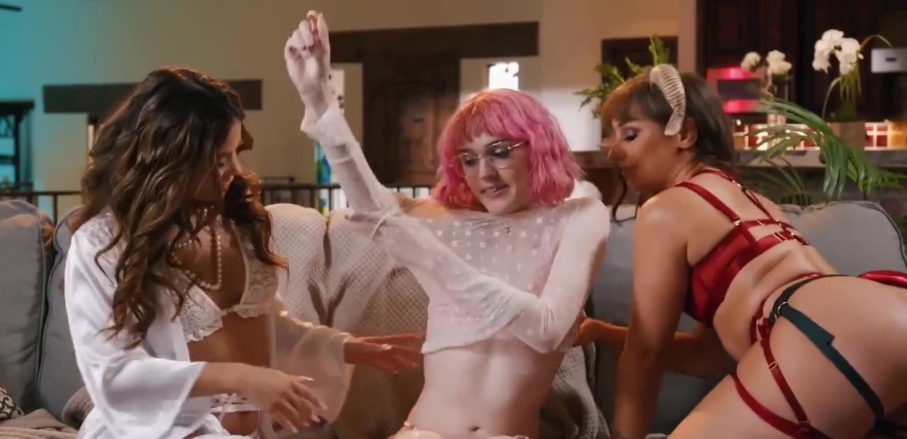 Devil and angel fight over small tits trans Claire Tenebrarum and share her in 3some.The petite babe deepthroats her small tranny cock and the tgirl is rimmed as she fucks her.The devil fucks the brunette with strap on toy and gives the ts a footjob