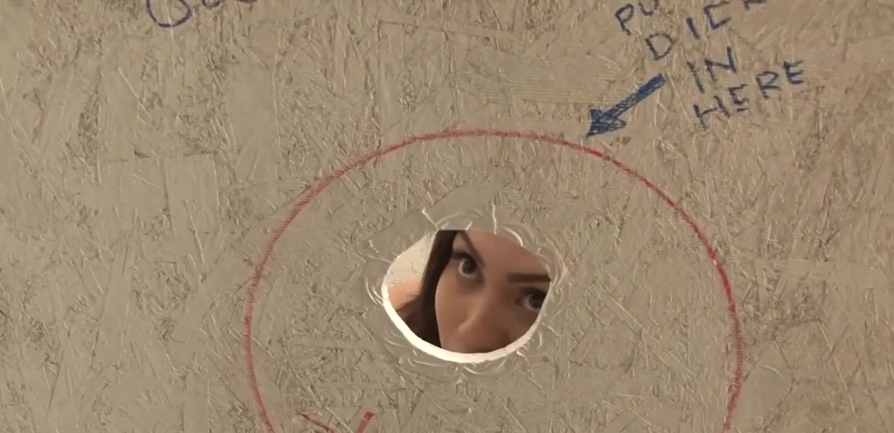Sexy trans Luna Rose sucks off black cock through gloryhole