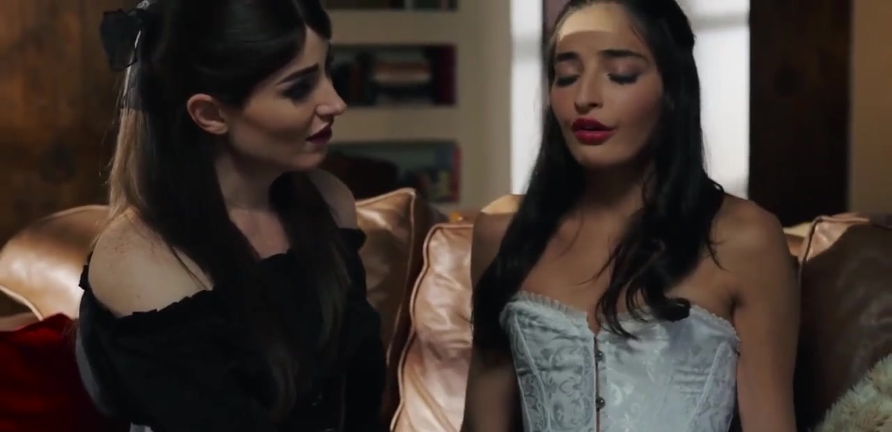 Small tits tbabe Natalie Mars gifts petite babe Emily Willes a corset. Sexual tension builds and begin kissing then tit sucking. The petite babe gives her tranny cock a deepthroat blowjob then her big ts ass an anal fisting before she fucks her pussy hardcore.
