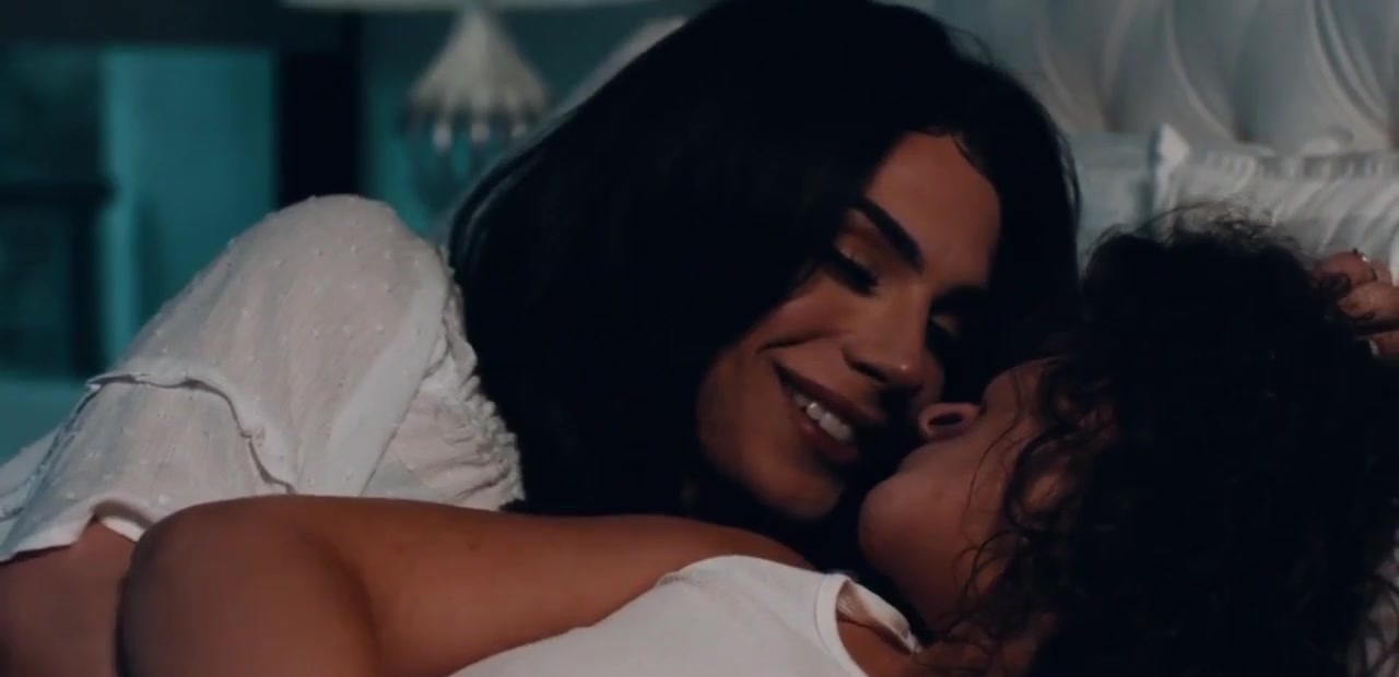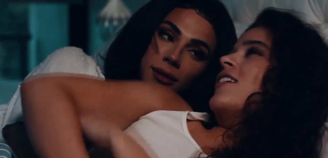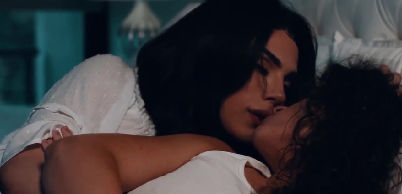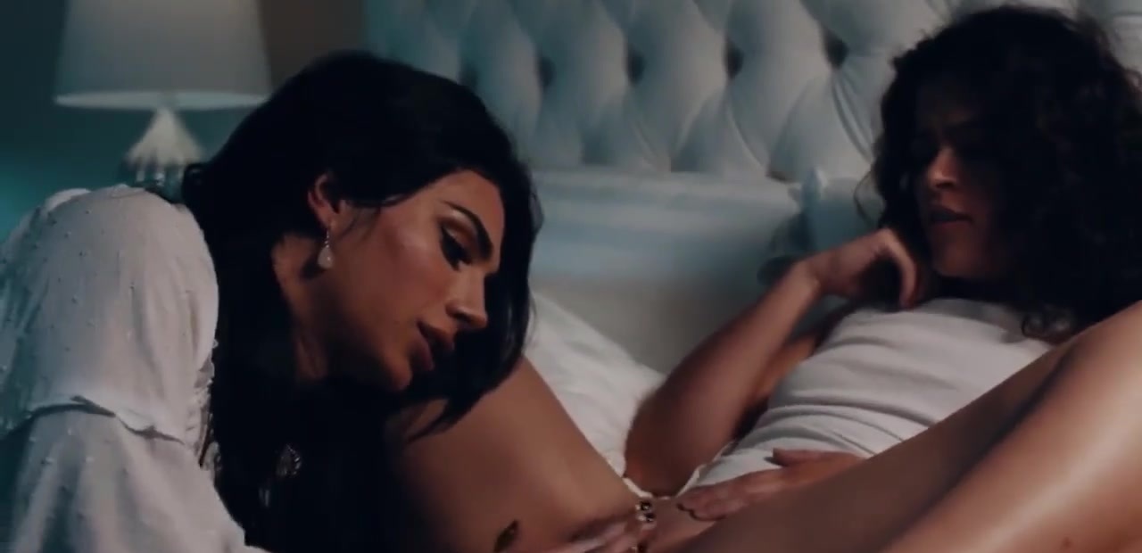 Skinny trans stepmom and her stepdaughter are on the bed cuddling and kissing each other passionately.After that,she goes down and licks her stepdaughters tight pussy.In return,her stepdaughter throats her tranny cock and rides it after.