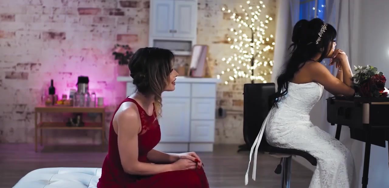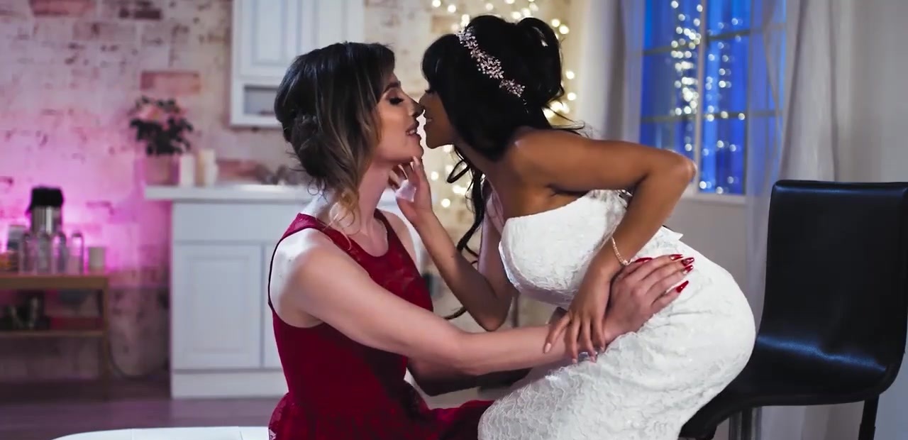 Asian bride is crying because her groom did not show up in their wedding.After that,her Tgirl bestfriend comforts her by kissing her passionately.Next is,she lets her sad bestfriend suck her tranny cock and in return,she licks and fucks her pussy.