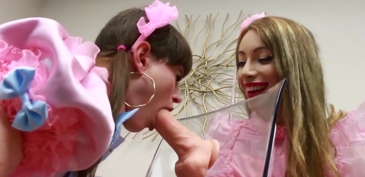 Sissy tranny Natalie Mars toying with lascivious blonde