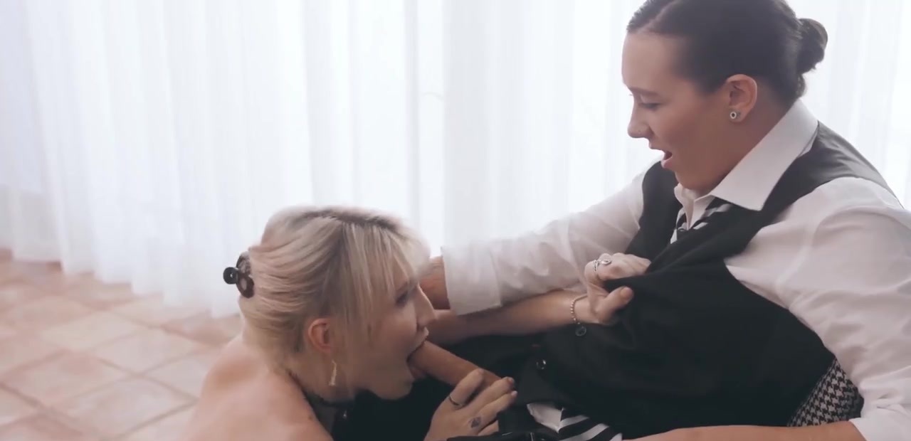 Sexy tattooed shemale Lena Moon swaps cock sucking pleasures with Sinn Sage during sixtynine before feeding her cum after fucking hard.