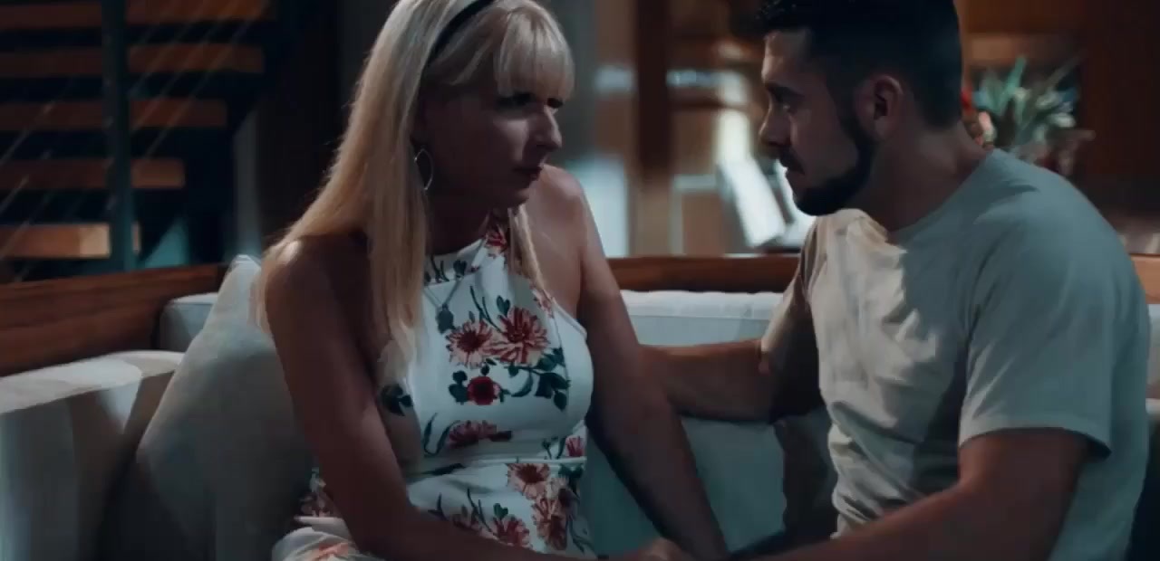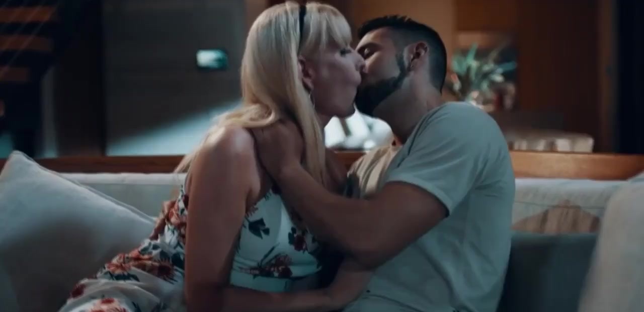 In the living room, busty blonde shemale Jamie French flirts with her stepson and kiss him torridly. The big tits ts stepmom deepthroats his big cock while stroking her tranny dick then stretches her big ass for a hardcore bareback in missionary.