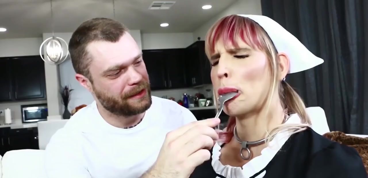 Tranny maid River Enza disciplined for being naughty! The hot tbabe was a very naughty girl and she deserved some proper punishment!
