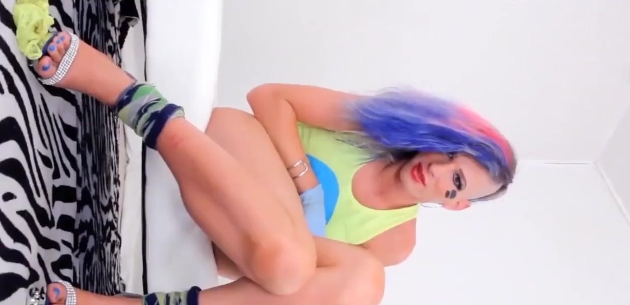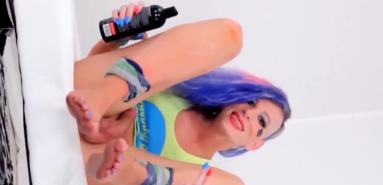 Glamorous Jamie French rubbing oiled tranny feet solo