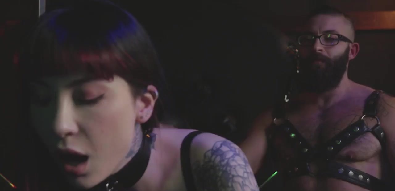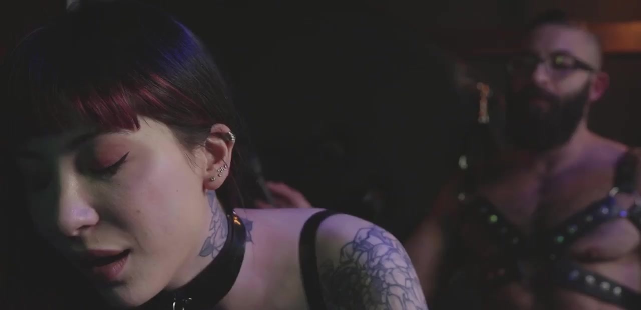 BDSM pussyboy in leather harness fucks GFs ass with strapon