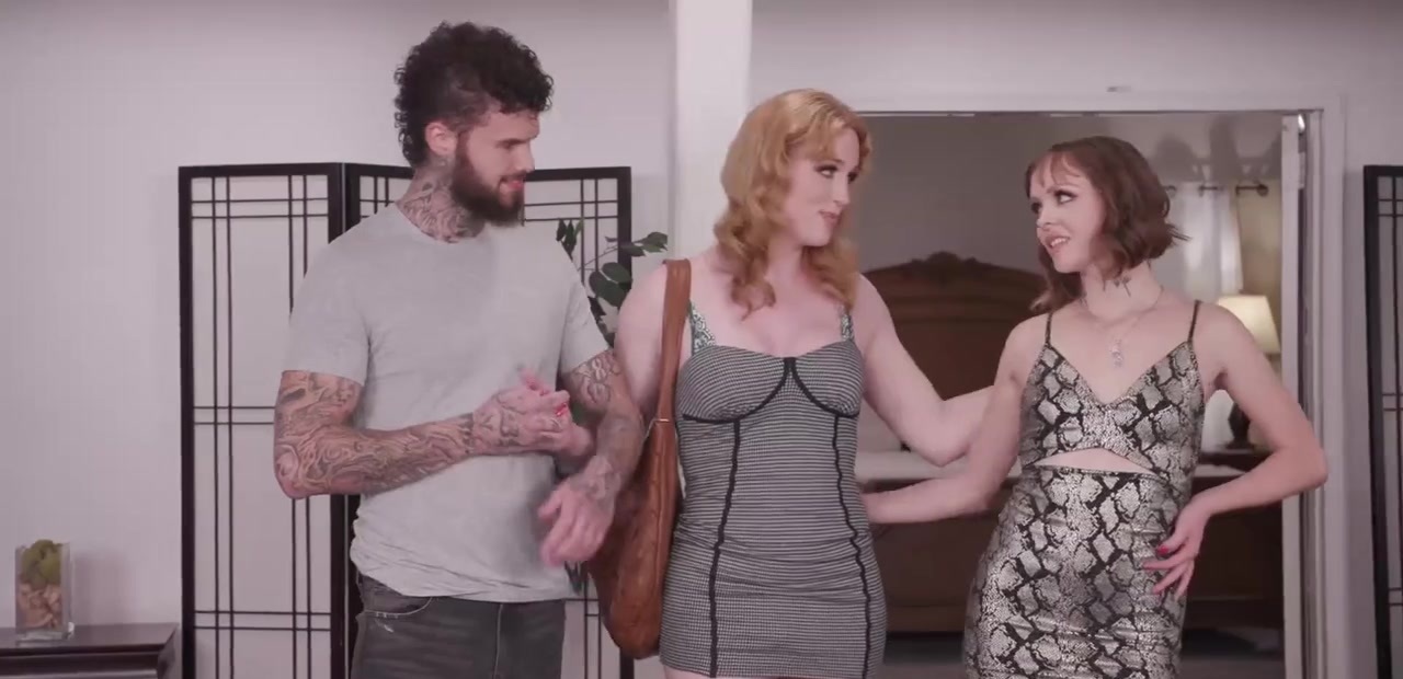 While on their bed, couples Aliya Brynn and Hatler Gurius are talking about exciting things like they want to try threesome sex with a trans. Good thing their trans friend Erica Cherry is ready for this. She join couples for some hot sex, Erica received double blowjob from Aliya and Hatler.