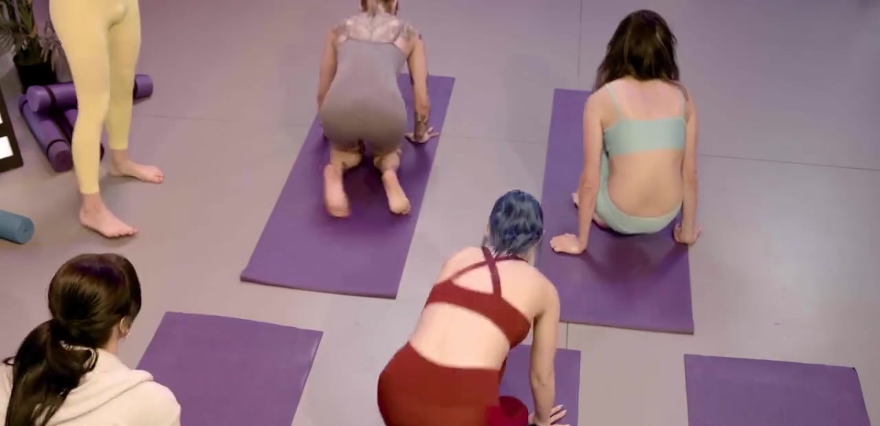 Emma Rose guides the class through more movements, she stays right behind Jewelz, feeling her ass. Jewelz is getting very turned on, and so is Emma. Emma decides there's no time like the present, and whips out her hard cock to fuck Jewelz from behind.