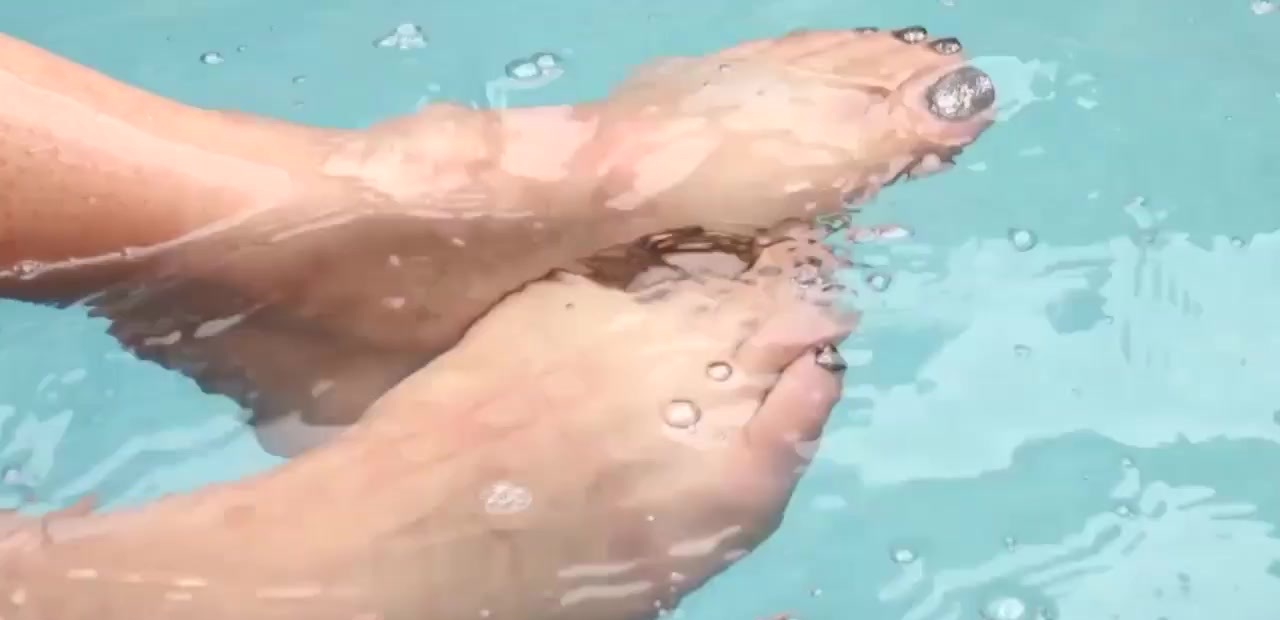 Hot tranny chick with big pierced nipples playing with her feet by the pool. Wet feet and nice tits are her main things for teasing.