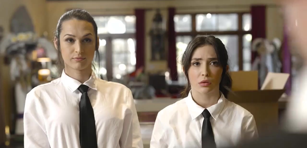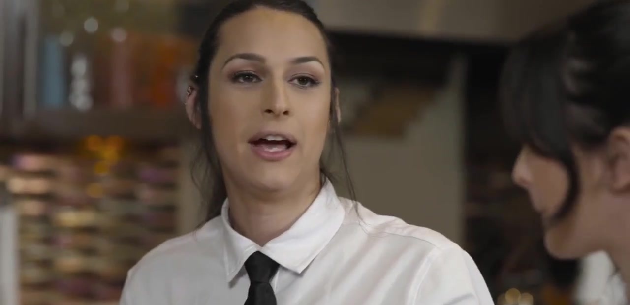 Khloe and Jane, after getting a good tongue-lashing by their boss, start to unpack the dishes for the party. As they do, they keep chatting with each other, though start to get flirtier and flirtier. Jane especially starts to get bold as she lightly probes Khloe to find out if she's into girls.