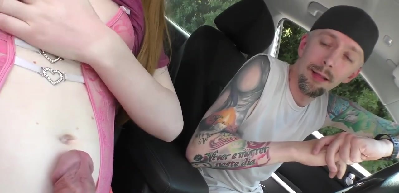 Erica moans and screams, legs shaking, as Kai's meat thrusts inside her tight sphincter. He strokes her she-schlong as he works inside her, bringing her to the edge of orgasm. Erica gives Kai a sloppy blowjob. She enjoys a dripping load of his sticky semen on her chin