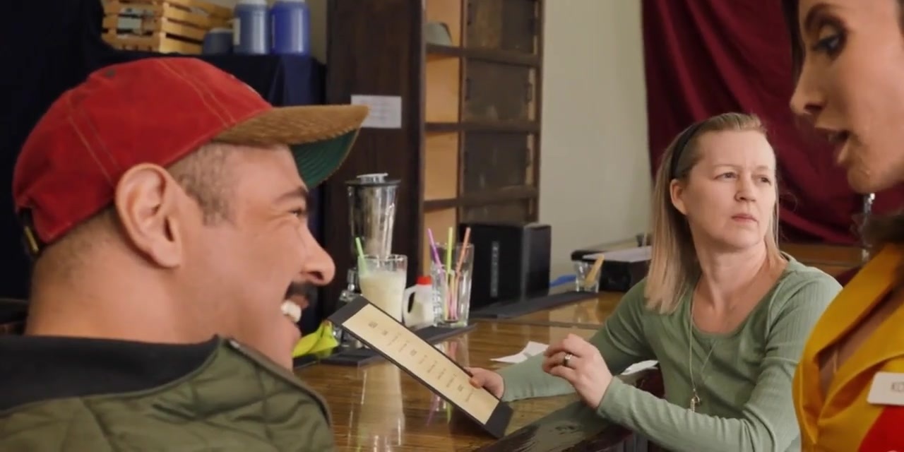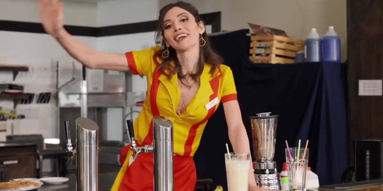 Food fetish TS waitress fucks guest in restaurant kitchen