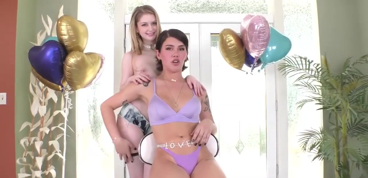 Daisy Taylor greets blonde cisgender girl Bunny Colby, and they initiate a playful, sensual session kissing. Daisy eats Bunny's bald, pink gash, making Bunny squeal. Daisy eases her she-prick into Bunny's pussy and pumps, thumbing her clit. Daisy masturbates till she squeezes out sticky cum.