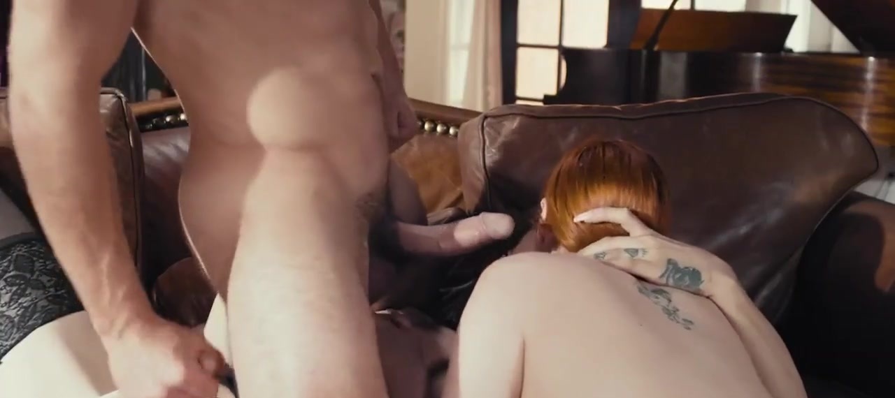 Busty TS MILF fucked by guy in 3some with redhead MILF