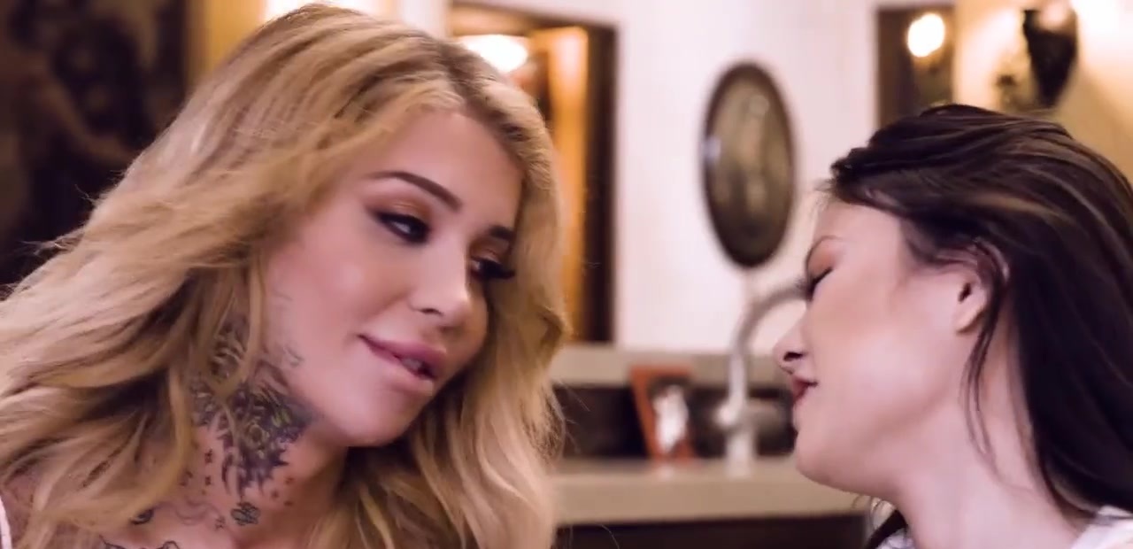 Gracie and Lulu kiss, while their hands touch each other under the table. As they're pleasuring each other, they almost get caught by Daphne, but the thrill just turns them on even MORE. After Daphne leaves for her yoga class, it's time for Gracie and Lulu's REAL fun to begin!