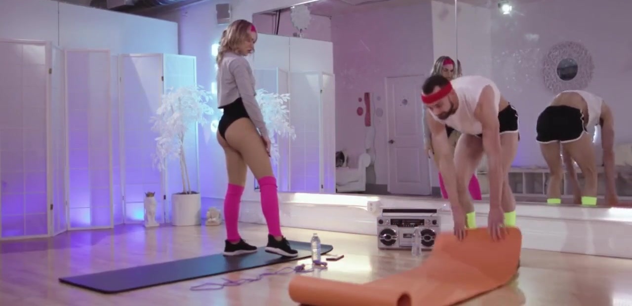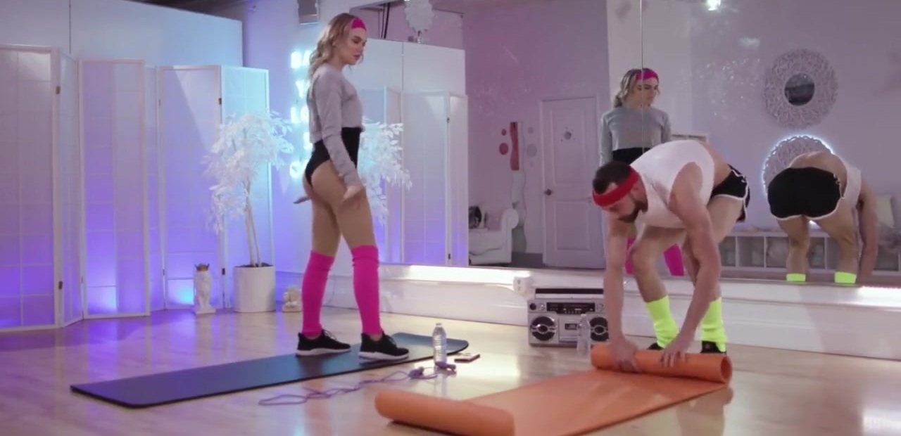 Yoga TS rims and bareback bangs her yoga colleague on class
