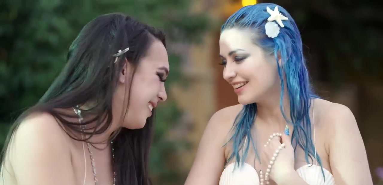 Two beautiful mermaids Kasey Kei and Jewelz Blu swim through the water in search of adventure Kasey and Jewelz climb out of the pool to see what its like to be on dry land The mermaids realize that they have additional new parts BETWEEN their legs