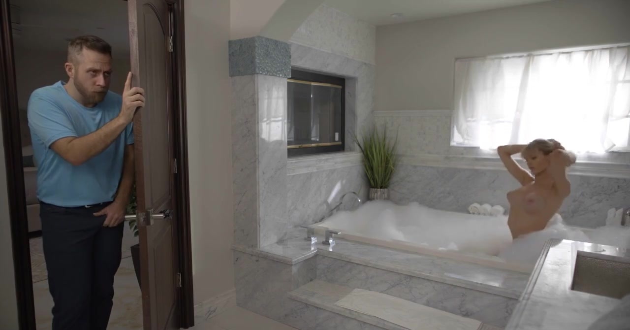 Im fucking hard watching busty shemale Tori Easton get naked and getting in the tub.I secretly get into the tub and the tgirl cant resist my hard dick.I kiss the big tits blonde trans and lets her deepthroat my cock.I anal bareback the hot tranny
