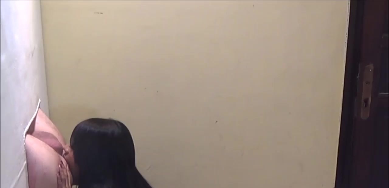 Gloryhole rimjob and this Asian ladyboy fucked the guy ass too through it