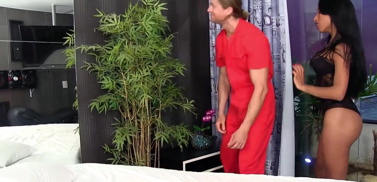 Naughty Transsexual Adrielhy Bronze and Her Gardener Fuck Each Other's Asses