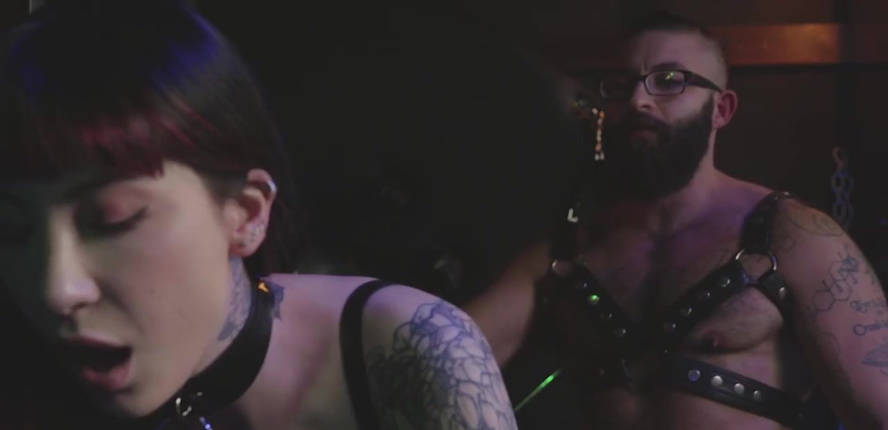 Strapon MTF pussyguy fucks tattooed latex babe in ass