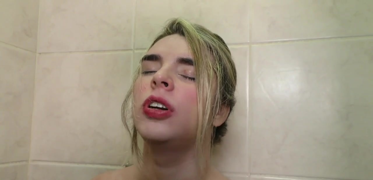 Blond Tranny Carol Penelope Strokes Her Hard Cock in the Shower