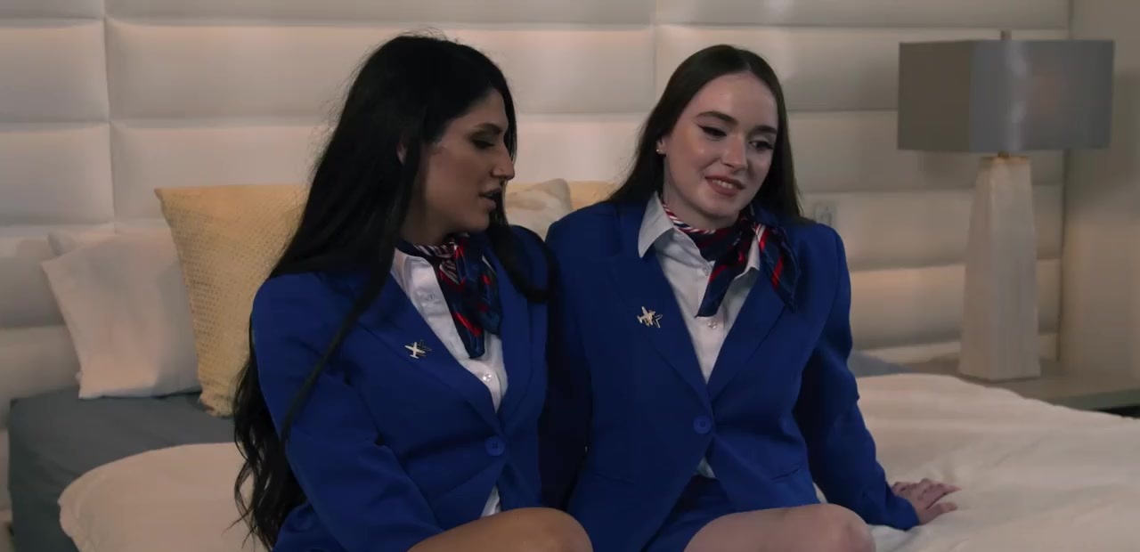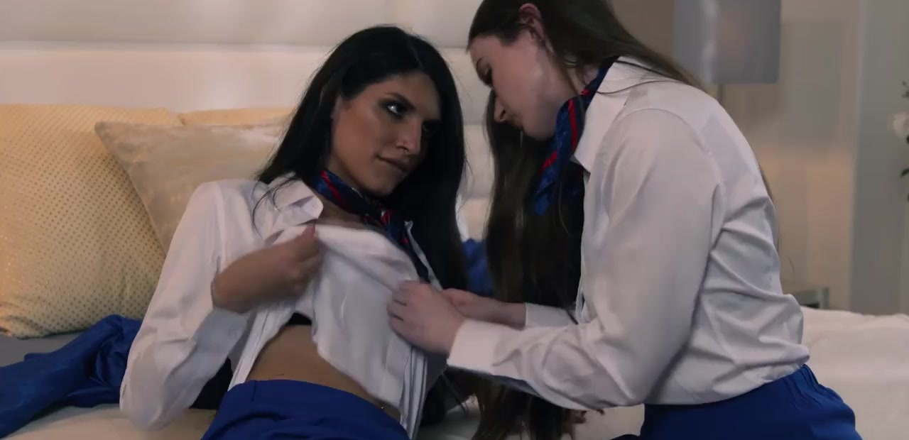 Zariah Aura eating out Hazel Moore hairy pussy in bed