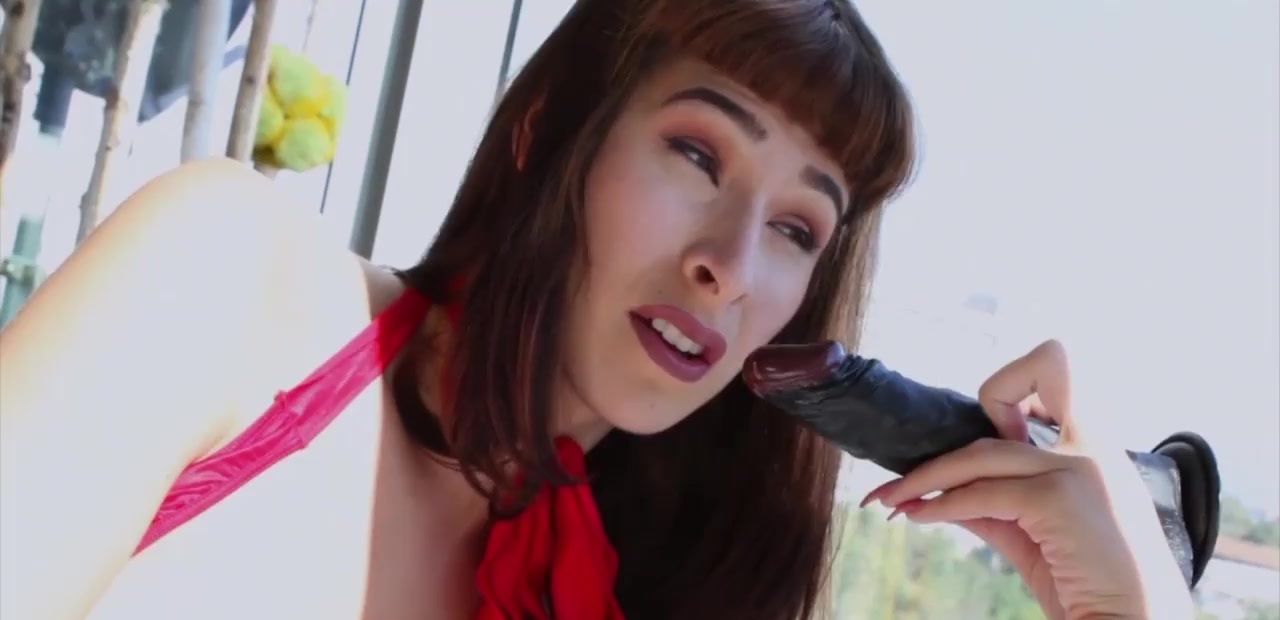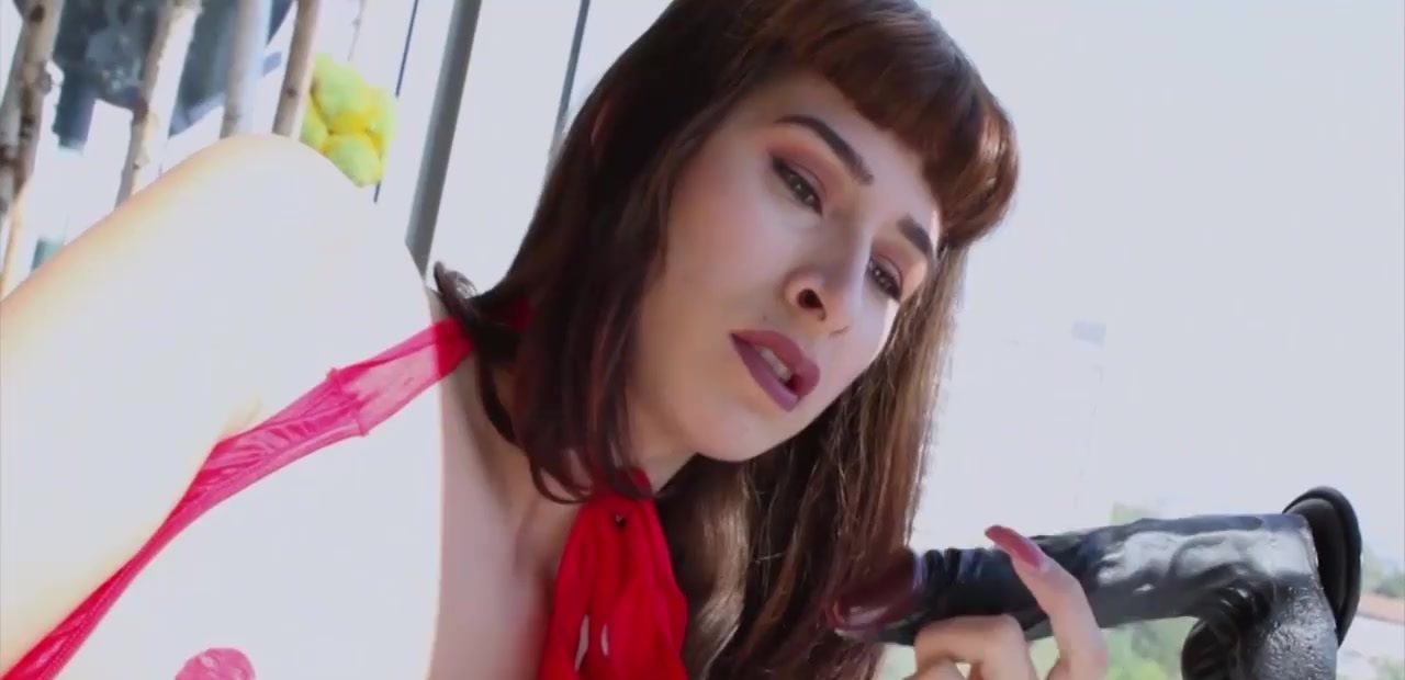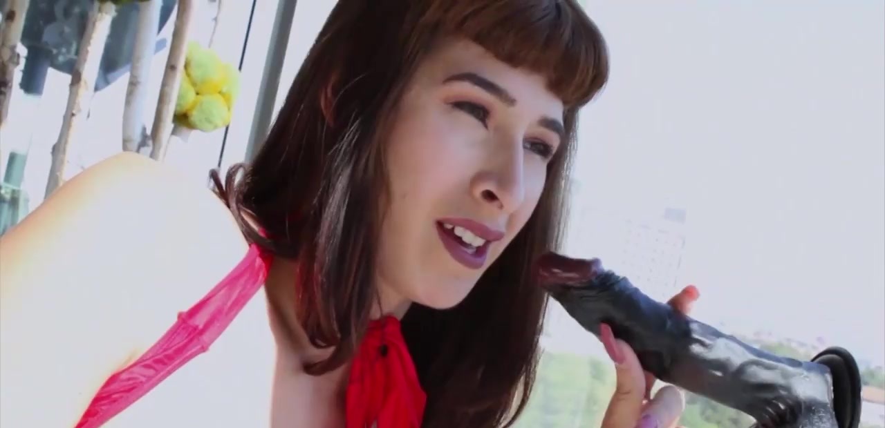 Super hot tranny Alexa Scout rides a huge black dildo