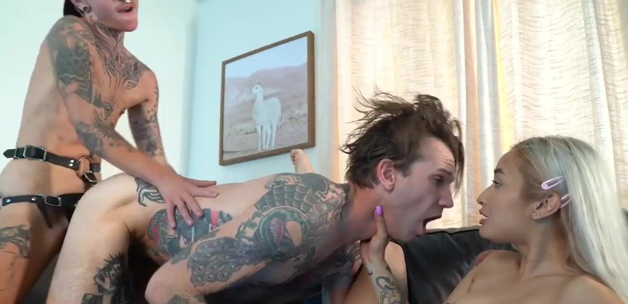 Strapon MTF pussyboy fucks guy in 3some with Asian GF