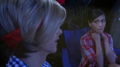 Beretta James and TS Nina Lawless are camping at Beaver Falls and during night blonde shemale visits lonely brunette in her tent and fucks her