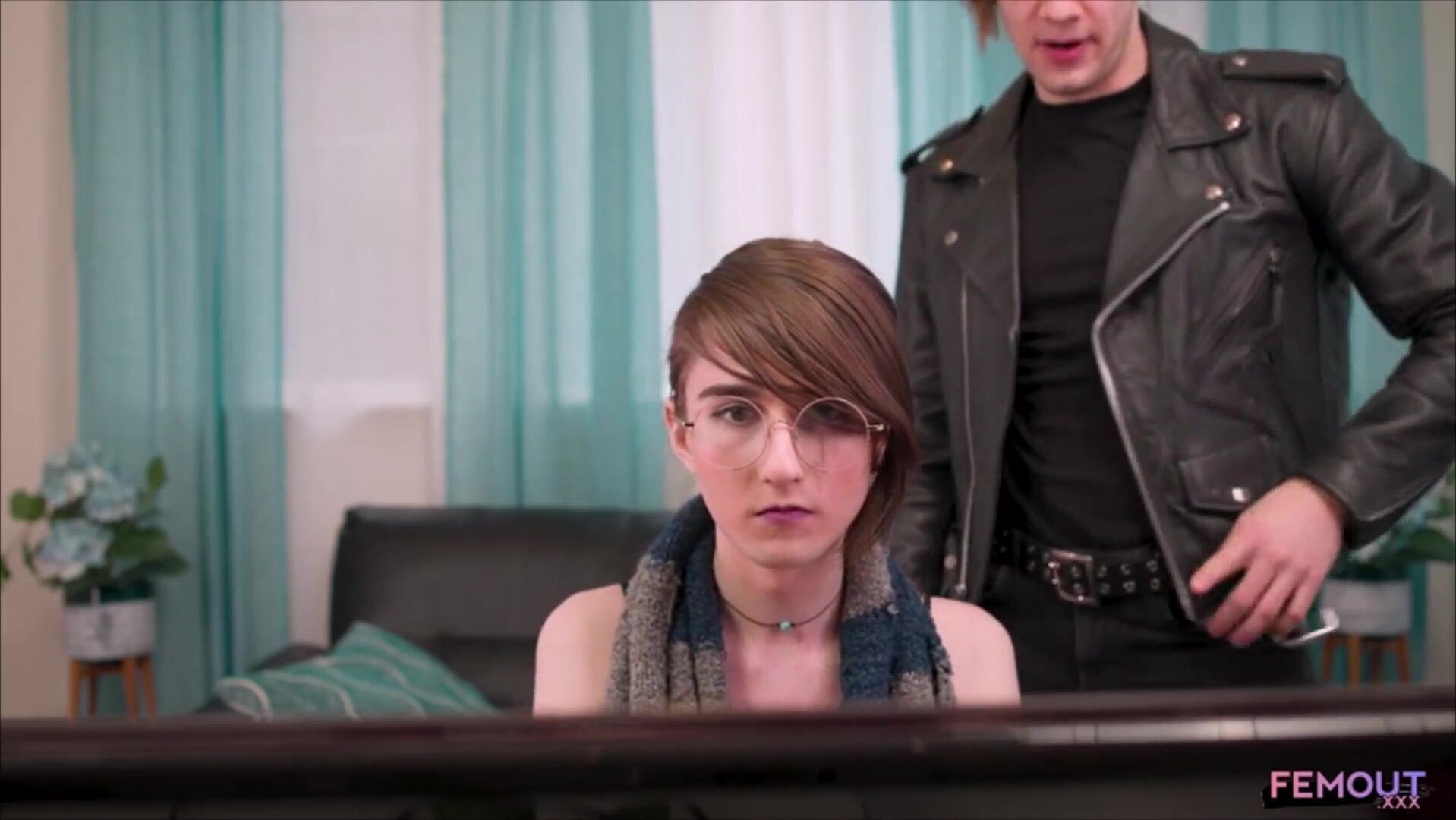 FEMOUT.XXX: Gorgeous teen tranny with glasses, mutual blowjobs, bareback anal.