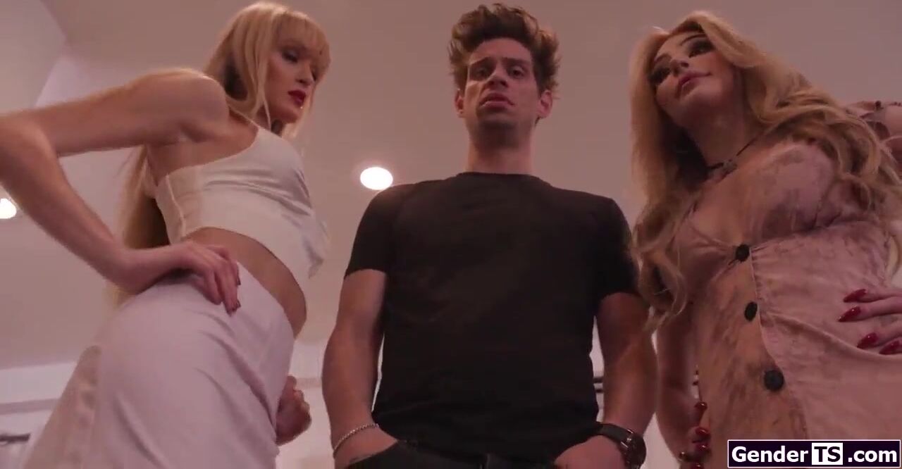 Guy is tricked by busty shemale roommates Tori Easton and Ariel Demure because they want to fuck.The big tits tgirls suck and bareback anal ride